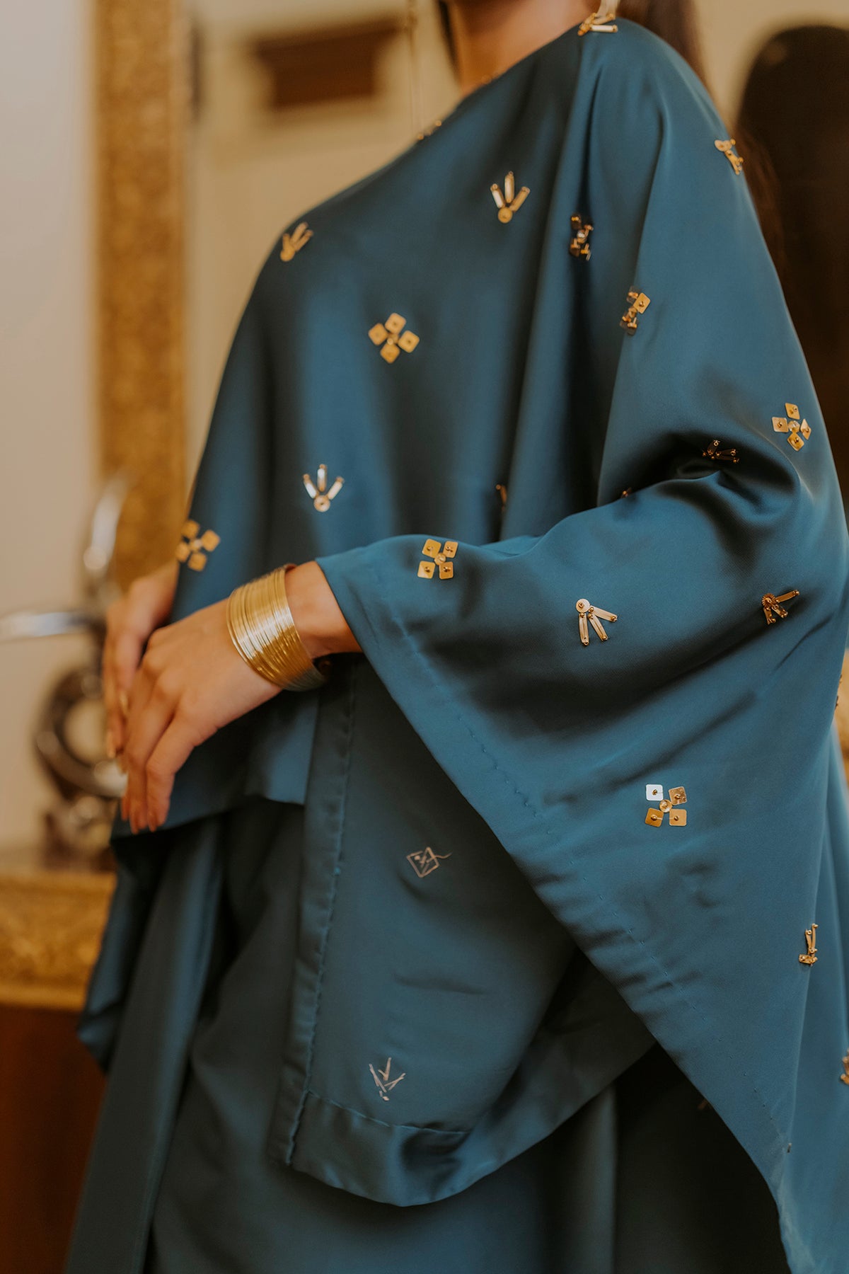 Embrace ethereal elegance with this stunning butterfly silk hand-embellished kaftan paired with a matching silk skirt, designed to captivate with every glance. The flowing butterfly-style kaftan, crafted from silk, glides effortlessly over the body, offering both comfort and grace. Intricately hand-embellished with shimmering beads and sequins, it adds a touch of opulence to the ensemble. Paired with a soft, fluid silk skirt that enhances the luxurious look, this outfit is perfect for special occasions, resort soirées, or festive gatherings—where style, sophistication, and artisan craftsmanship come together beautifully.