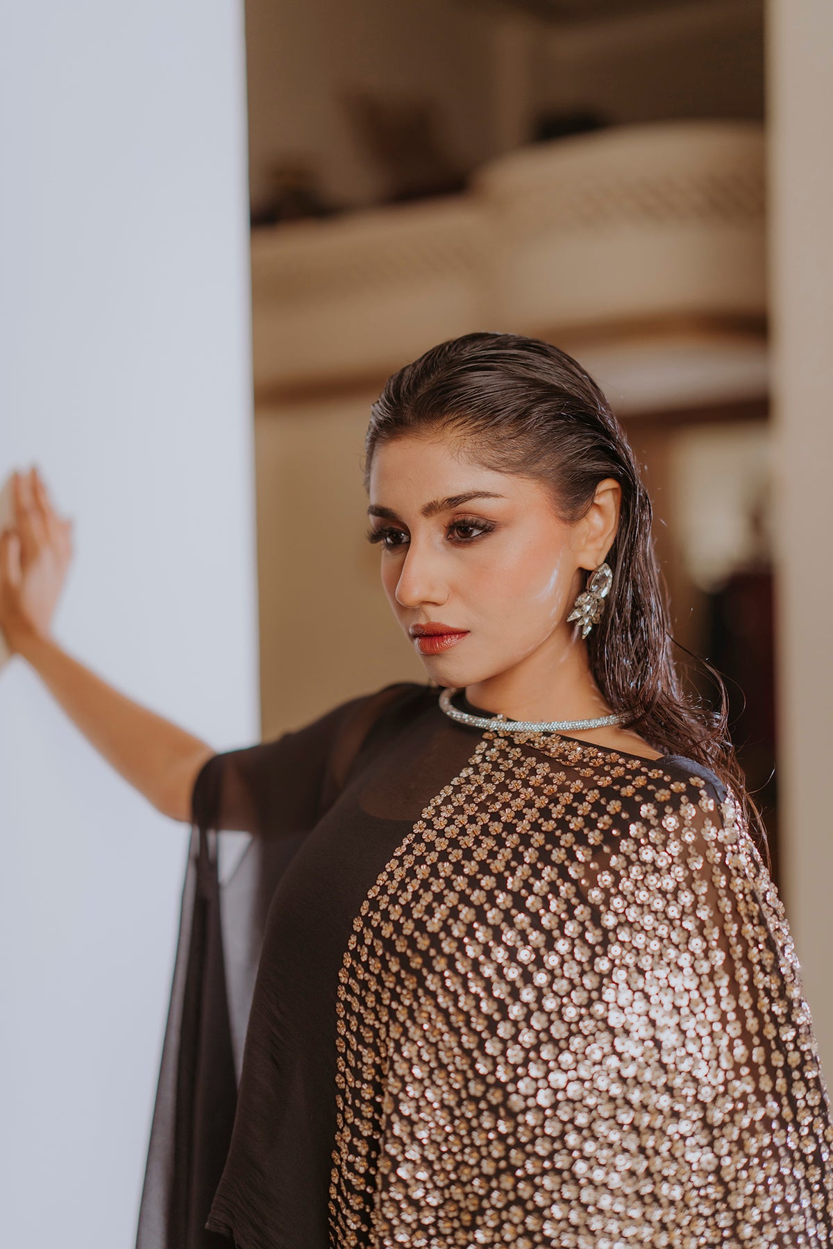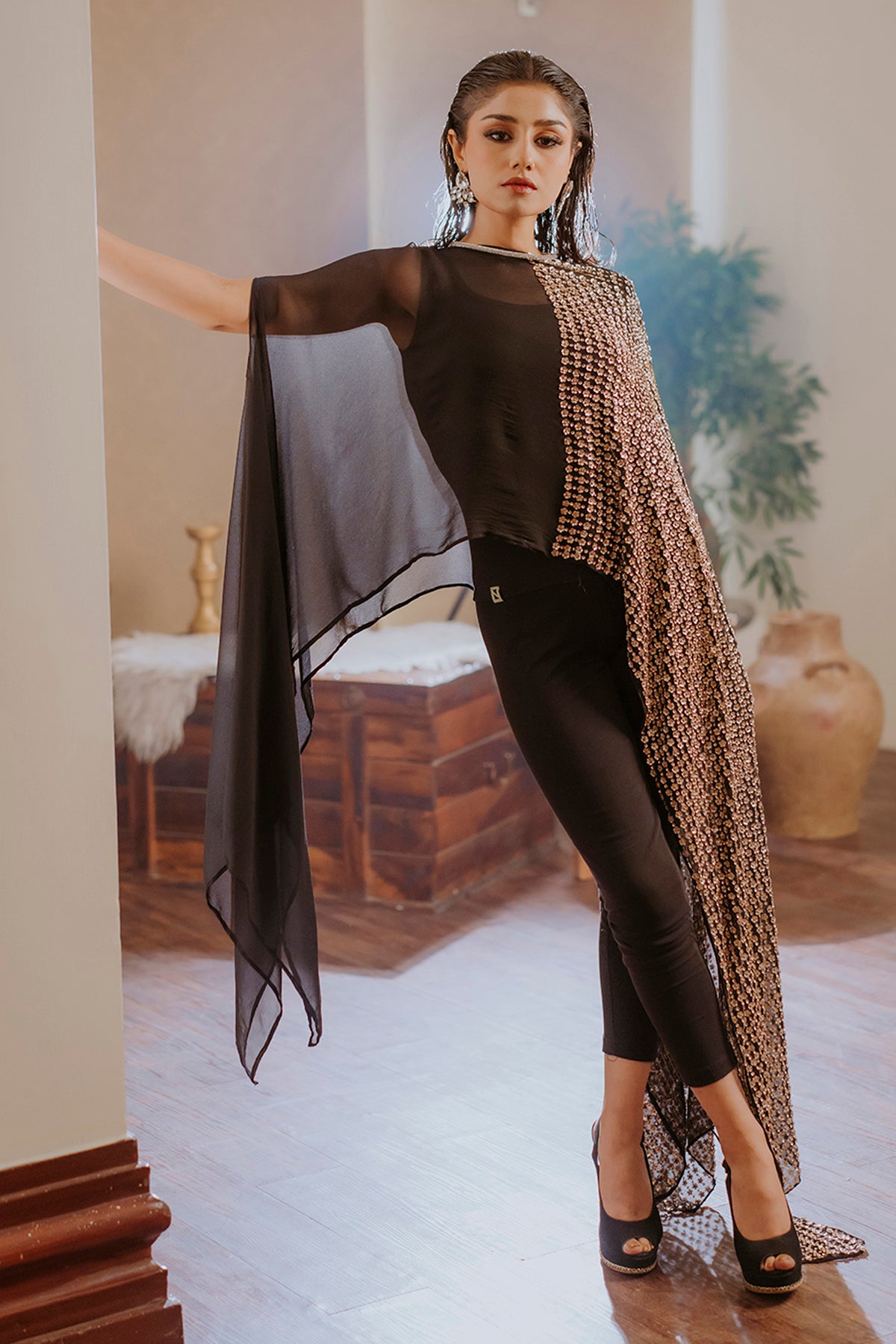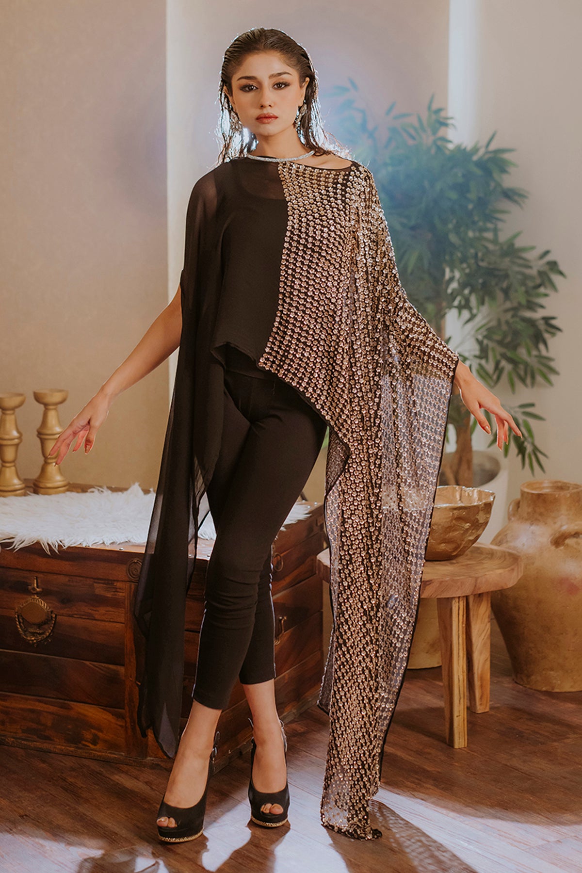 Step into effortless elegance with this one-piece georgette butterfly kaftan, designed to make a lasting impression. Crafted from airy, lightweight georgette, it features a flowing butterfly silhouette that exudes grace and movement with every step. The hand-embellished detailing adds a luxurious touch, with intricate patterns of shimmering beads and sequins that catch the light beautifully. Perfect for festive gatherings, beachside evenings, or resort wear glamour, this kaftan is a stunning fusion of comfort, sophistication, and artistic craftsmanship.
